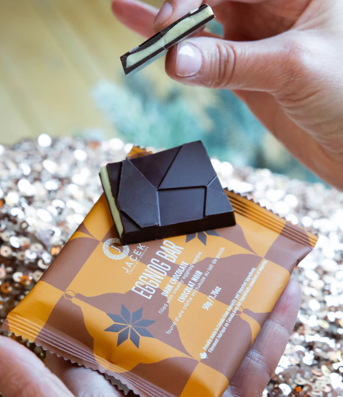 Tastes like Christmas cheer wrapped in dark chocolate! A smooth eggnog centre makes this bar merry, bright, and impossible to resist.