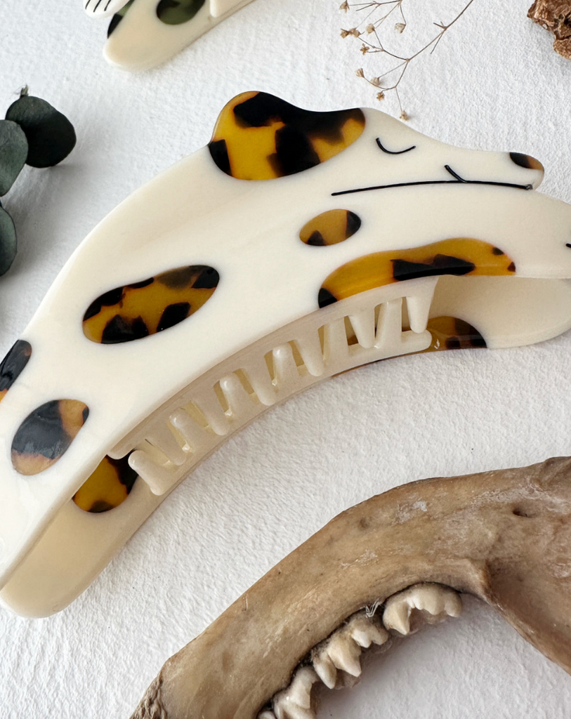 This little doggo was just so sleepy that a nap was the only option. This medium sized hair claw is strong enough to hold some thick hair, but finer hair will work just fine with this one as well.