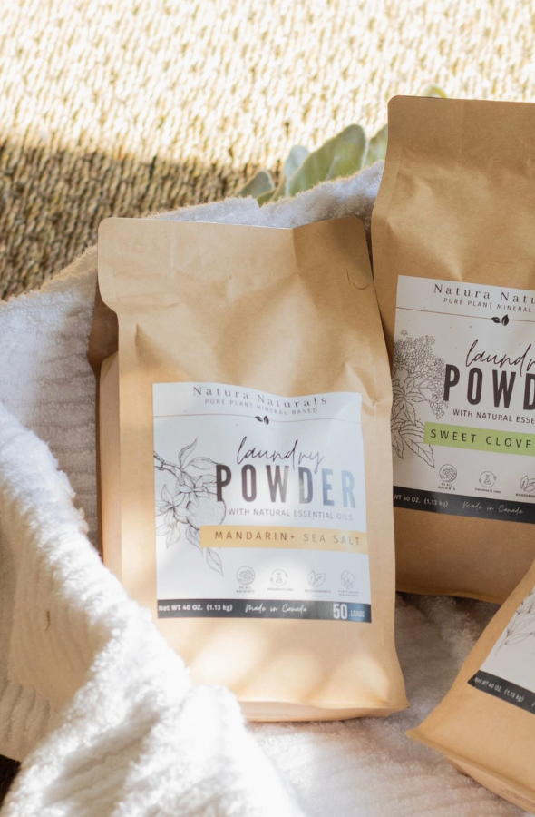 Is it time to rethink Laundry? Ingredients in conventional detergents can have harsh effects on skin, clothes, and the environment. Plus wasteful plastic jugs that are 50% water. Detoxify your life and care for our planet in one simple step by switching to our all-natural laundry powder. We believe there's nothing worse than the lingering smell of synthetic fragrances in your fabrics and clothes. Ingredients: Bergamot white Tea: Sodium Bicarbonate, Sodium Carbonate, Sodium Chloride, Citric Acid, Lavender, Bergamot, Jasmine, Citrus oils Ingredients: Unscented: Sodium Bicarbonate, Sodium Carbonate, Sodium Chloride, Citric Acid HE (High-efficiency)safe SLS-free,& Dye-free, phthalate-free, sulfate-free Mineral based helps soften hard water Biodegradable and safe for septic systems Size: 1.13 kg/ 50 loads Directions: Add one full scoop (1 TBSP) of Laundry Powder to the drum of your washer or into dispenser tray