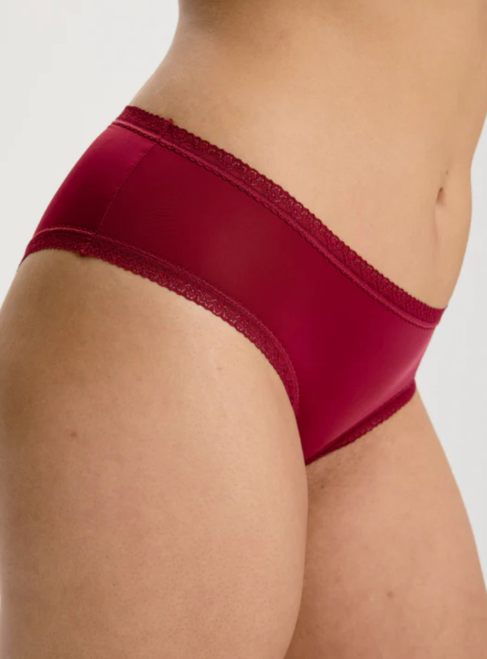 featuring a delicate lace trim, this everyday microfiber hipster panty combines comfort with a second-skin feel.
